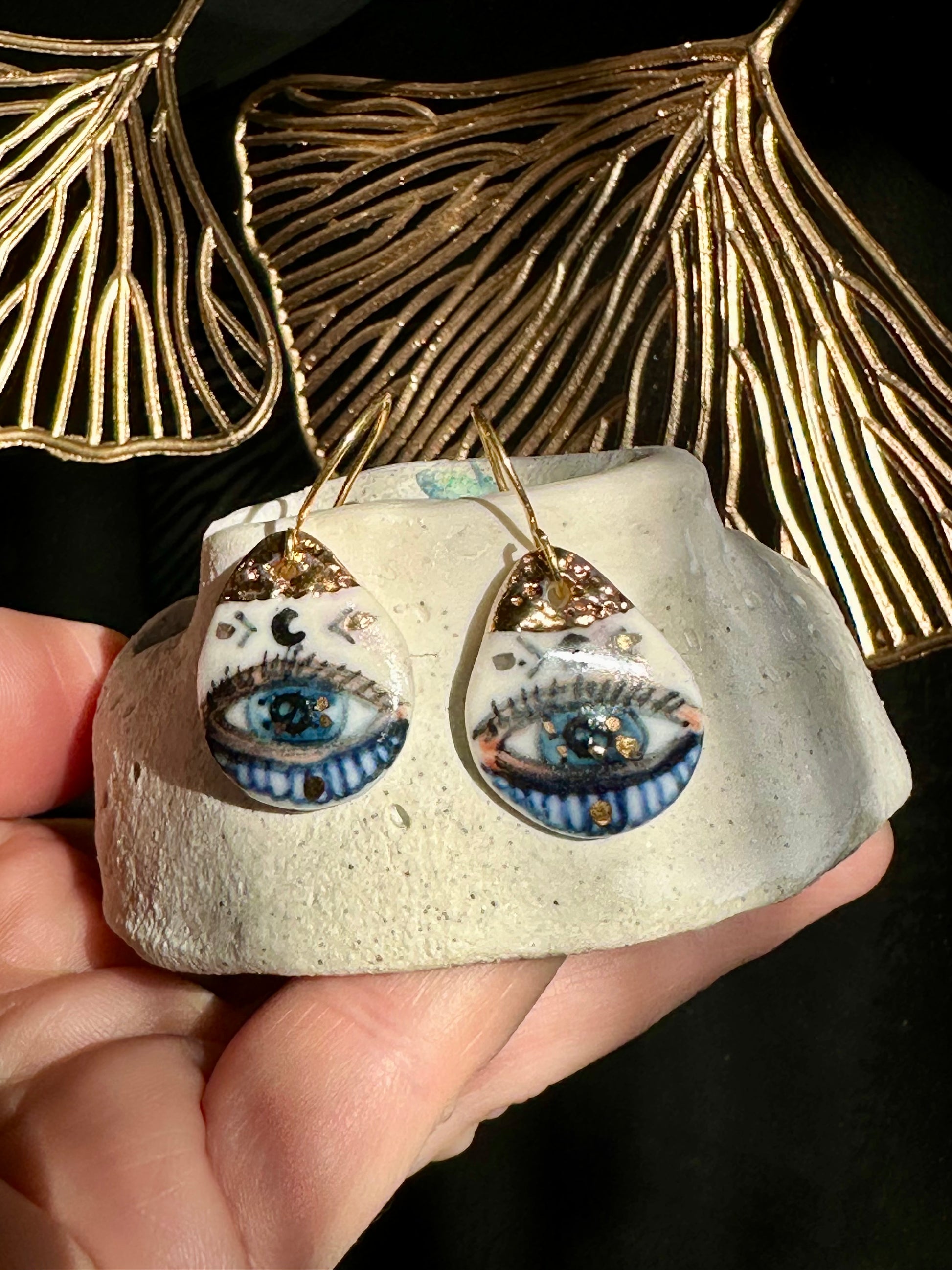 ‘The Protective Eye’ small Porcelain Earrings With Gold Detail