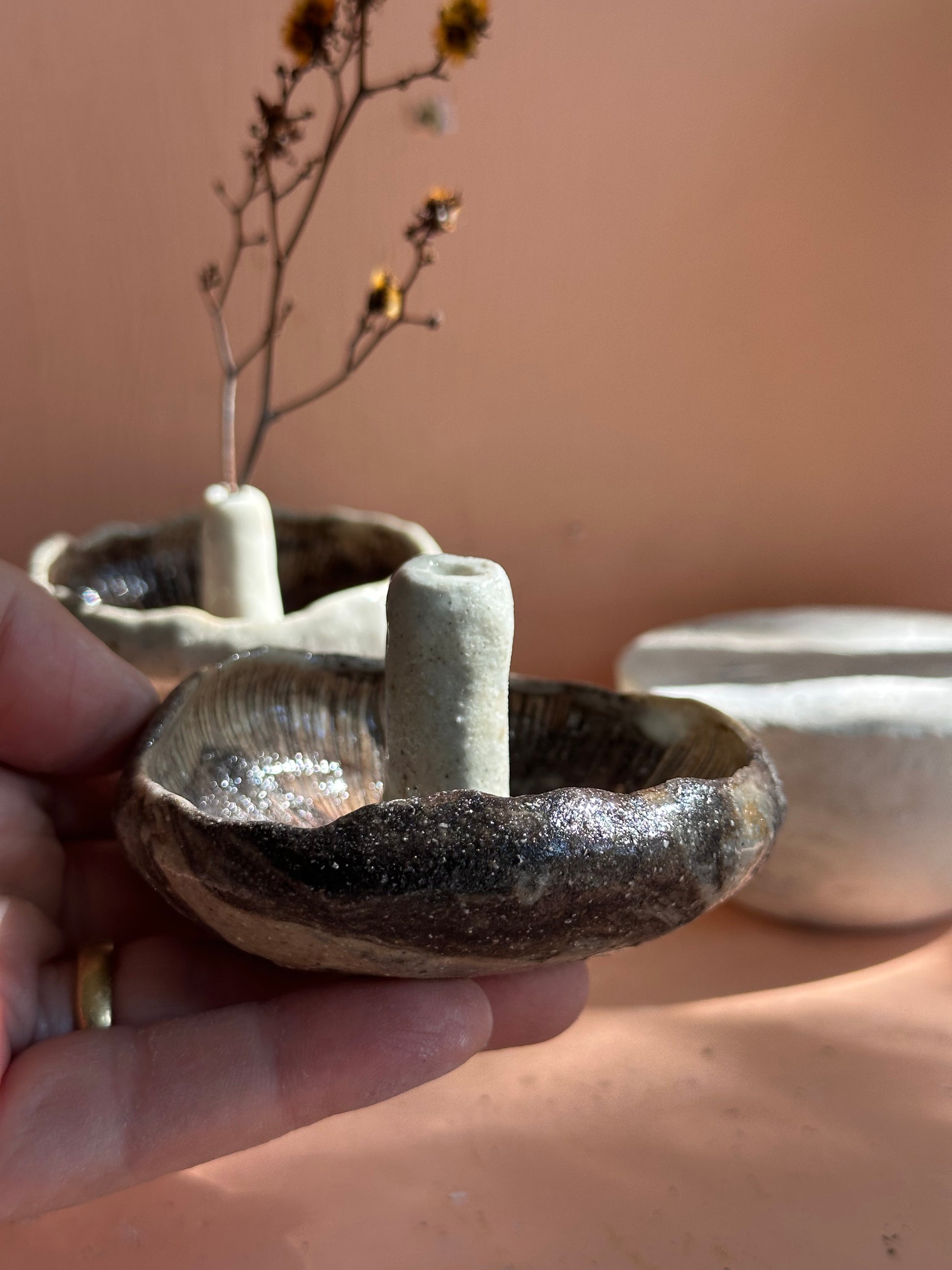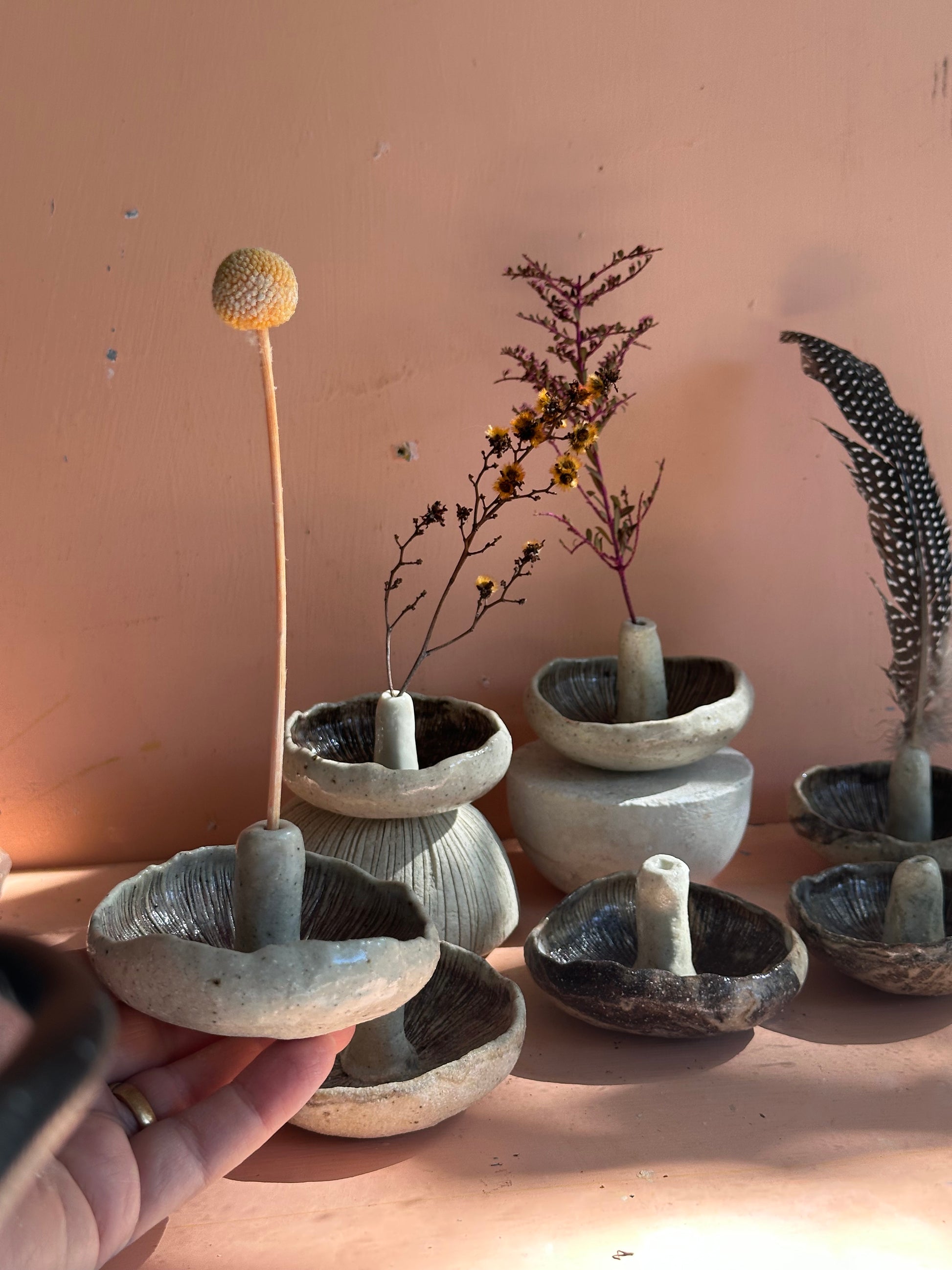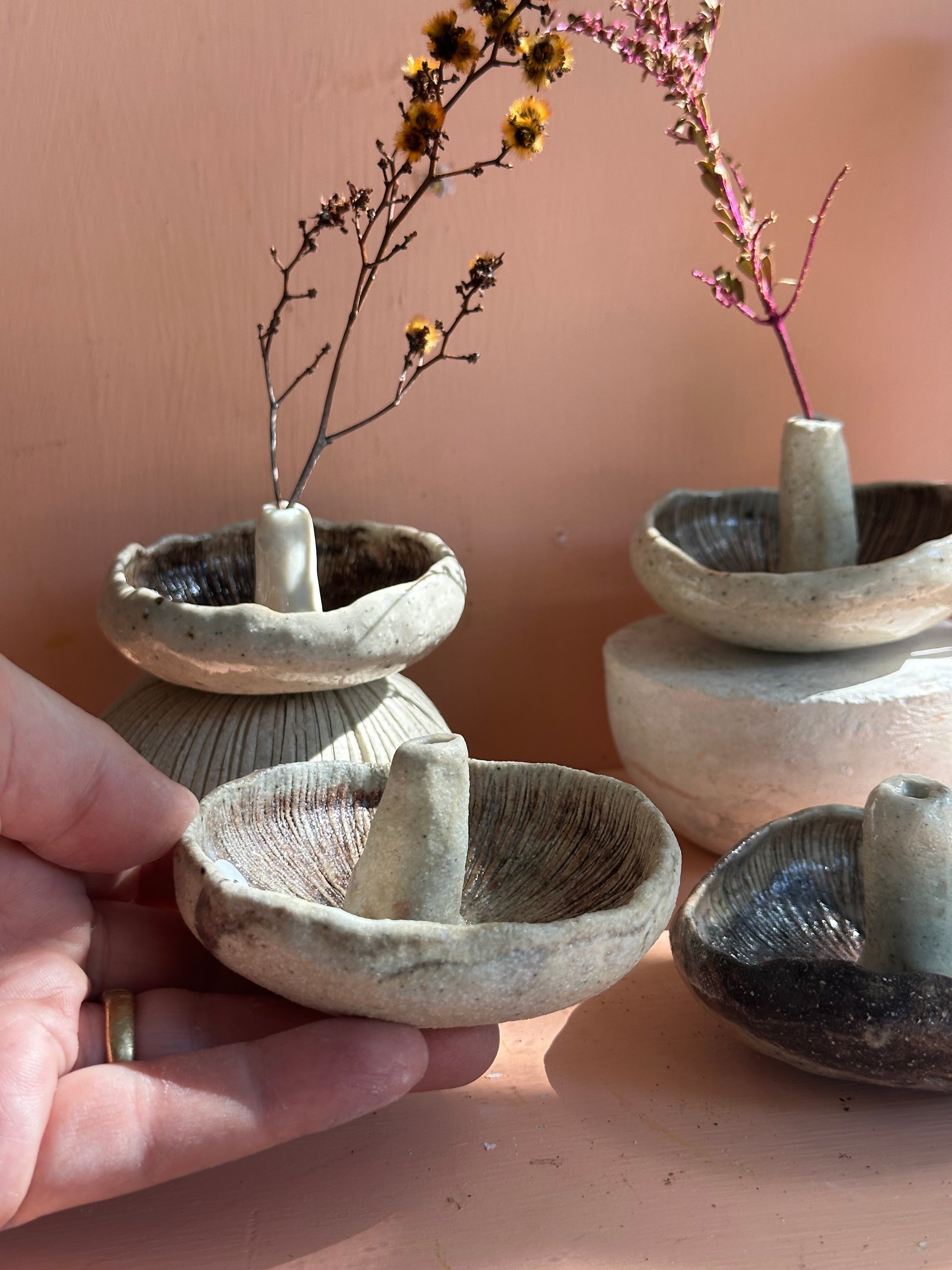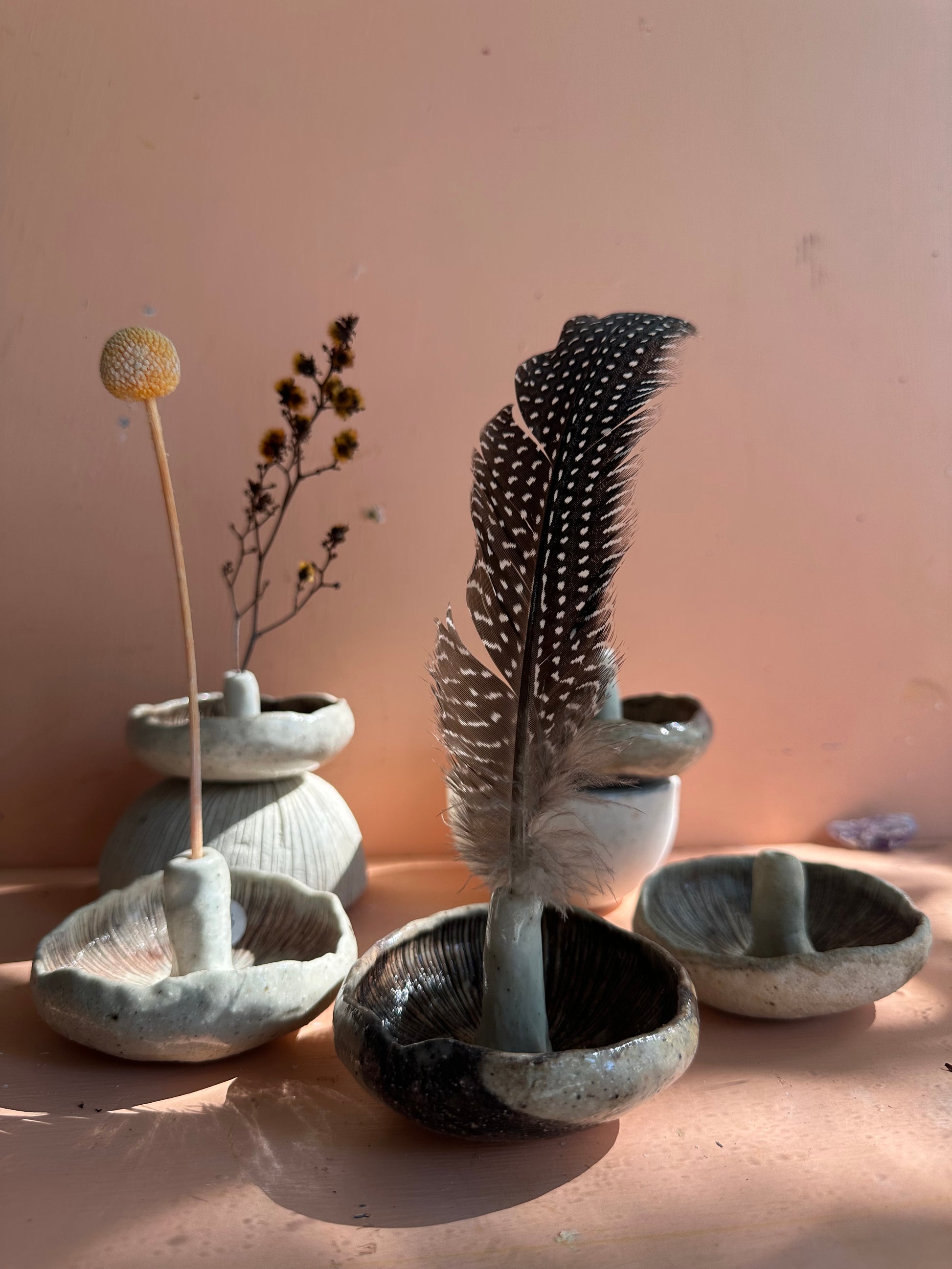 Little mushrooms to use as incense burners or feather/ twig / flower holders.