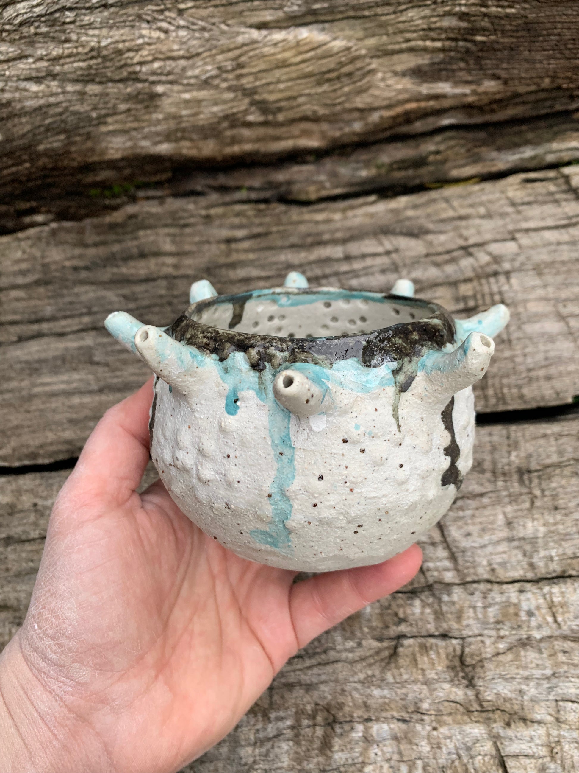 A one of a kind hand formed and textured, organically shaped planter pot (plant not included) made by me in my home studio in castlemaine.